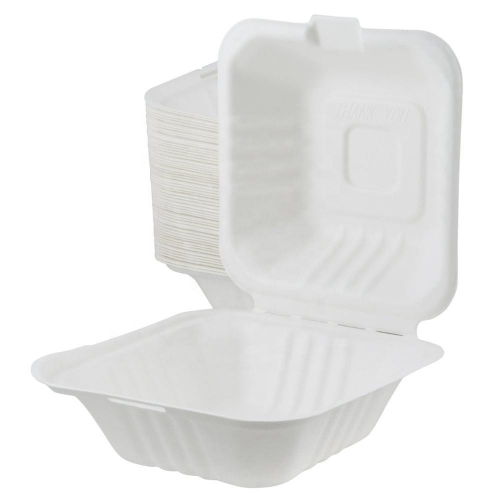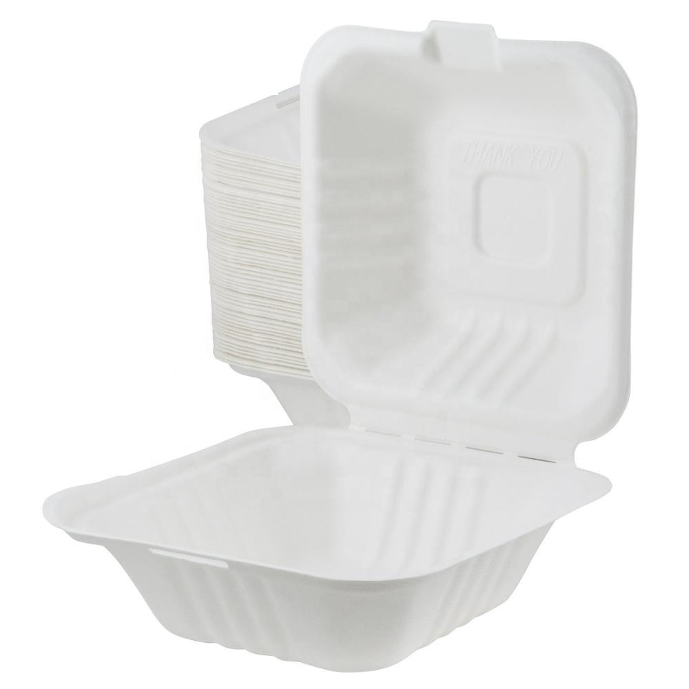 6 inch Disposable biodegradable sugarcane hamburger box for packaging